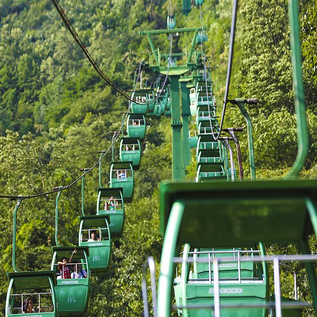 坐上缆车,每一缕空气都显得更清新一些,人也会感觉更冷一点,也许这就是大山的特产吧。