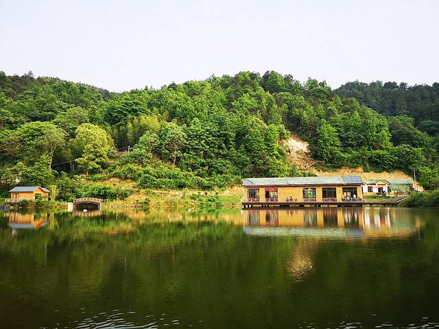 雅田湾山庄,满目绿色,因为有山泉水,水质清澈,很多人在池塘边钓鱼,不知道鱼获怎么样,下次可以来钓钓鱼。