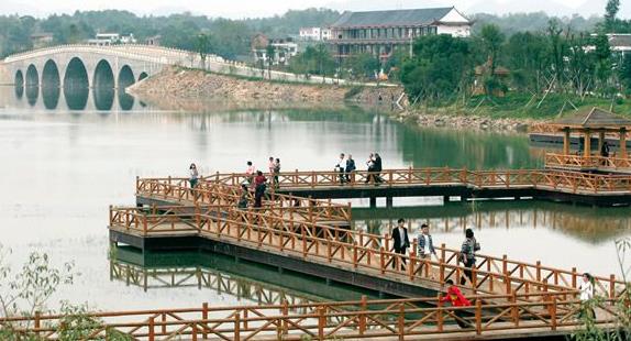 春天的紫龙湖,湖水清澈,木质亲水走廊上微风拂面。接着往桃花谷,桃花谷千万条花蕾密布,是目前湖南最大的桃花景区。