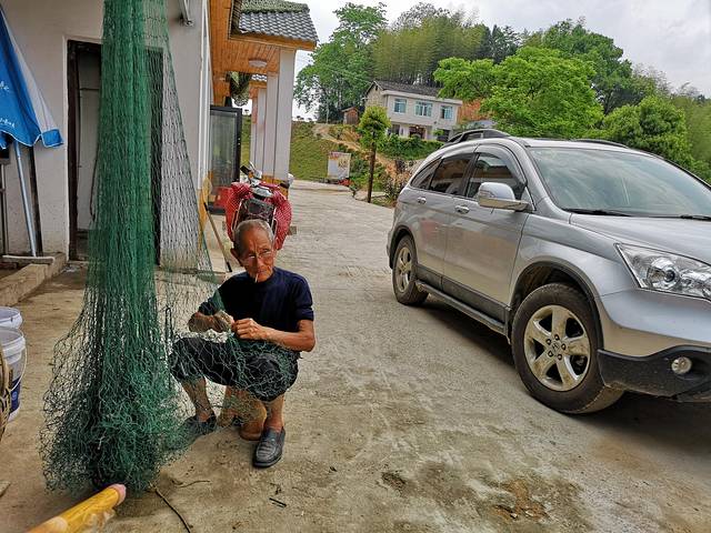 雅田湾山庄,老爹爹在补渔网,一股老匠人的气息。