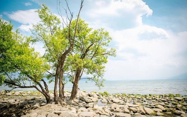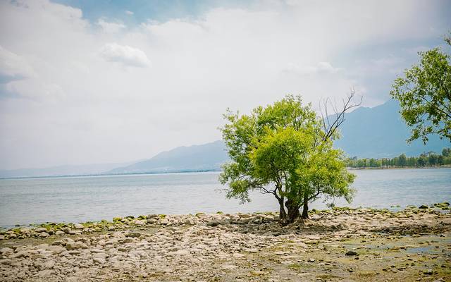听说环洱海一段很多地方都在修路不能进去,心心念念的海舌公园同样也不例外,随行的管家便推荐了一条古生村的路线(这时候觉得有个当地的导游真好)。古生村里民居古朴,街巷整洁,溪水环绕,绿树成荫,绕着村子小走一段路便可以直通洱海边,虽说是枯水期,但大理的洱海依旧美成了画。