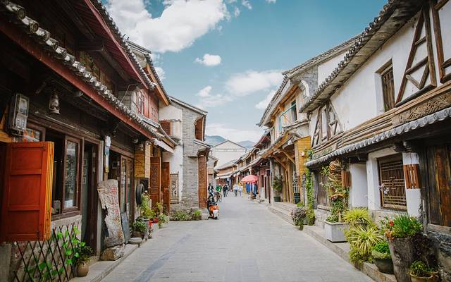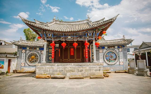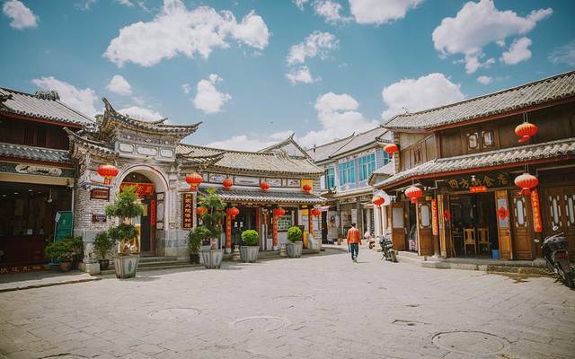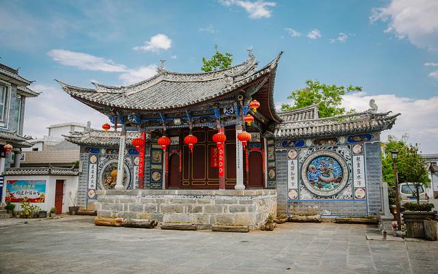 继续往前,漫步在古镇里,这里保留下来了很多明清时期的建筑,基本形式有“一坊一耳”、“一坊两耳”、“三坊一照壁”、“四合五天井”等的古宅,近距离的置身于周边传统的白族民居,更是能让人近距离的感受当地白族人的生活,路过幽长的被岁月打磨的青石板小路,清静又淳朴。