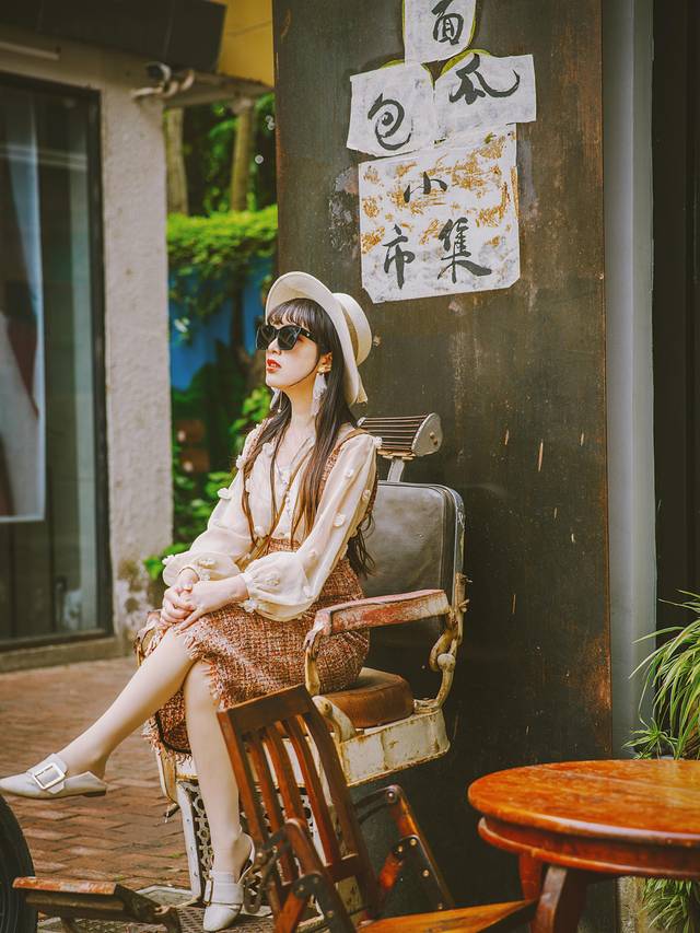 一路往里走能看到面包瓜小市集,复古的门头,做旧的座椅,超酷的机车,让这里瞬间变身成一个极具艺术气息的打卡地。