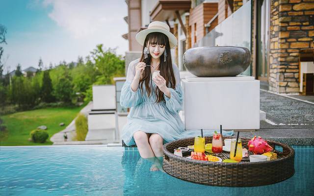 之前看了很多刷爆朋友圈的“巴厘岛漂浮早餐/下午茶”,每次去海岛都想体验一番却总是错过,没想到大理居然也有悬浮下午茶,这也是这家酒店最初吸引我的地方!