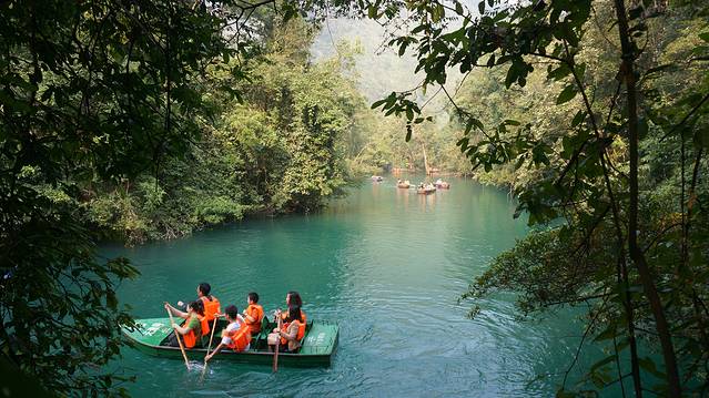 小七孔景区位于贵州黔南布依族苗族自治州荔波县城南部30余公里的群山之中,景区响水河上横跨着一座青石砌成的七孔拱桥,故而得名。景区融山、水、林、洞、湖泊和瀑布为一体,秀美幽静,加上浓郁的土家和瑶族风情,使得小七孔景区名声大震。