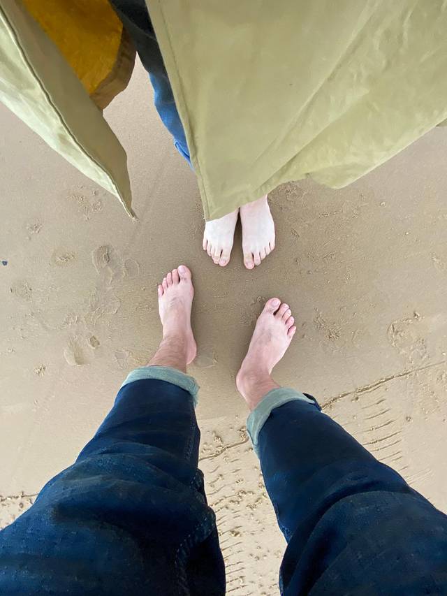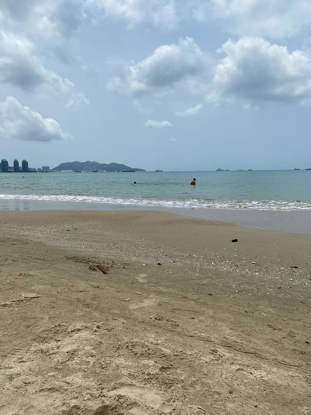 下午呢,我们在市区绕了绕就去了假日海滩。由于天气阴沉沉的,所以人并不多,假日海滩旁边挨着帆船训练基地,所以有一拨人在捣鼓帆船准备航行。我们脱了鞋走在沙滩上,这里的沙很细腻,一点也不硌脚。两个人牵手走在沙滩上真的让人觉得幸福满满的,就是没有人给拍一张背影照有点遗憾。我们穿着不算厚的外套,稍稍感觉有点冷,后来又下雨了,我们就赶紧躲上车了。沙滩上有好几个环卫工在捡垃圾,海边的环境很干净,为他们点赞。