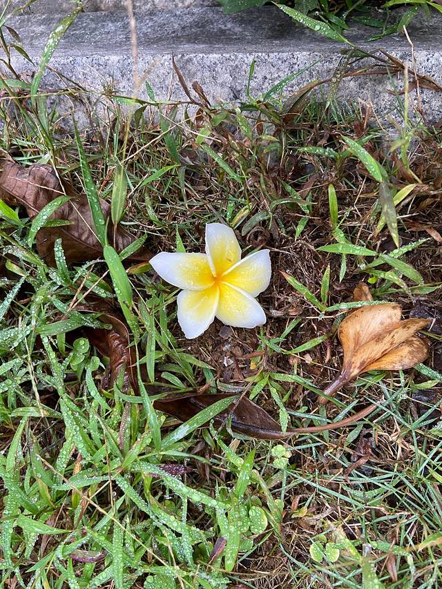 第二天早上天还是有点阴,早餐我们尝了当地的汤粉,很清淡。在这里还没看到有买水果的,但是看到了菠萝蜜树,一棵树上长出了好多果子,还能长那么大,果然,热带水果树很了不得。在住的酒店后边有一块别墅区,有凉亭,有泳池,旺季的时候应该很热闹。这里有一种很漂亮的花,像今年比较流行的小雏菊,我在网上搜到此花名为鸡蛋花,很接地气。中午我们尝了本地的特色美食,米烂、糯米鸡、肠粉(当地称为馍),那里的面类似我们这里的清汤挂面,味道还是很不错滴~