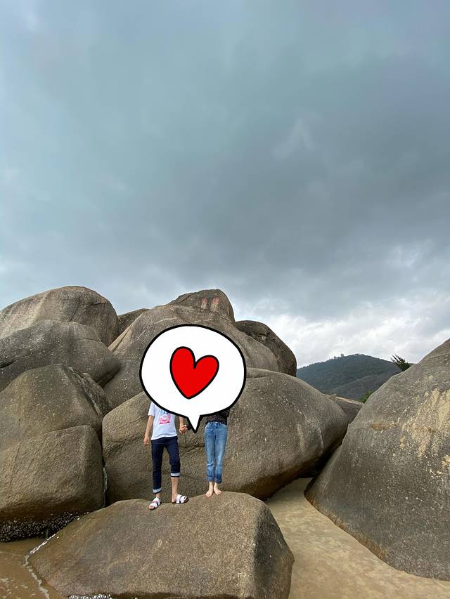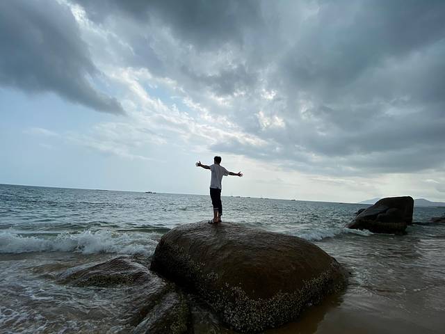 到了小交通的终点,也就是天涯海角了,人也多了起来,不过比旺季的时候还好。天涯石和海角石坐落在不同的角度,用手机的广角差不多可以把两块石头拍到一起。天气不算太晴朗,还会偶尔飘下点毛毛雨,照片拍出来也是不一样的美。