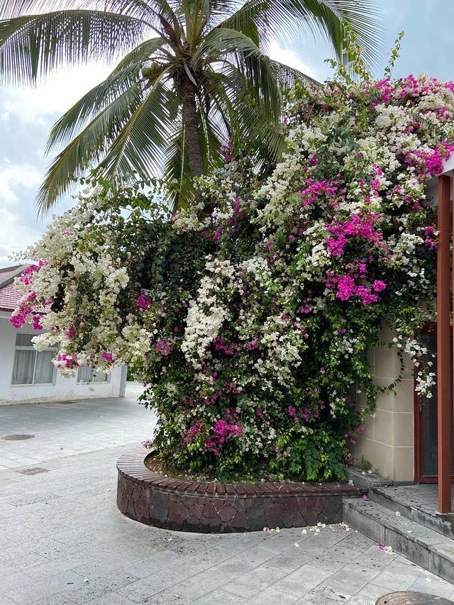 看完天涯海角,坐着小交通很快就能出去了。在出口转弯处,有卖手工巧克力的,还有颗顺着墙伸进来的一大簇花,颇有“一枝红杏出墙来”的感觉。