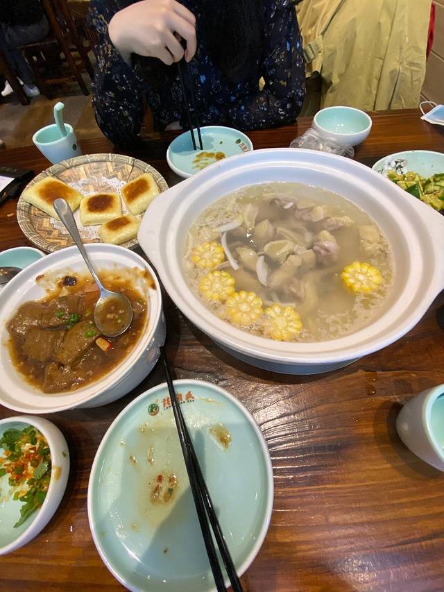 前两天在海口也没来得及去尝尝本地的椰子鸡,所以中午我们打车来到市区去吃本地的这道特色菜。在网上团了一份四人套餐,我们俩差不多吃完了。黑豆腐很嫩,凉拌黄瓜很爽口,椰子鸡吃着没有很特别的味道,肉煮了八分钟,嚼不烂,汤挺好喝。