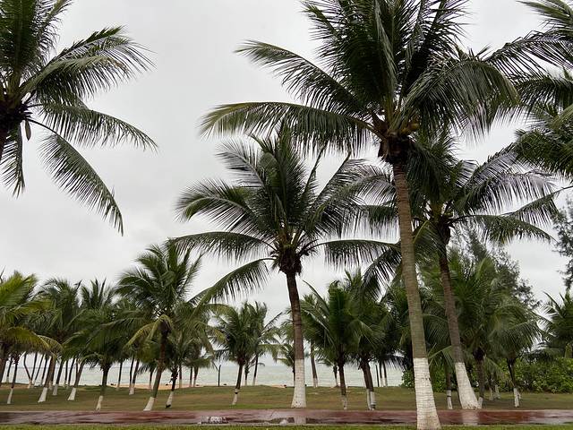 虽然没有蓝天白云,随处可见的椰子大道也让人感觉心旷神怡。中午我们找了一家网上评分挺高的小店,尝了号称“海南四粉”的陵水酸粉和砂锅炒粉,个人感觉口味一般,酸粉的味道与我们北方的酸味很不一样,辣椒也是黄辣椒酱。出过饭后雨都已经停了,之前也就是下了些毛毛雨,可以不用打伞的。