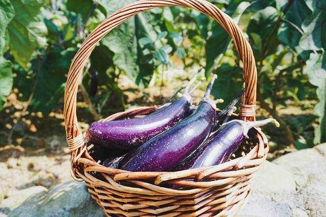 茄子长在田里,一畦畦地长着,紫色的茄子长长的,有些长得很饱满。第一次见到这么多茄子的洋洋也乐坏了,走进田里就开心的摘起来了,不知不觉就摘了一篮子了。