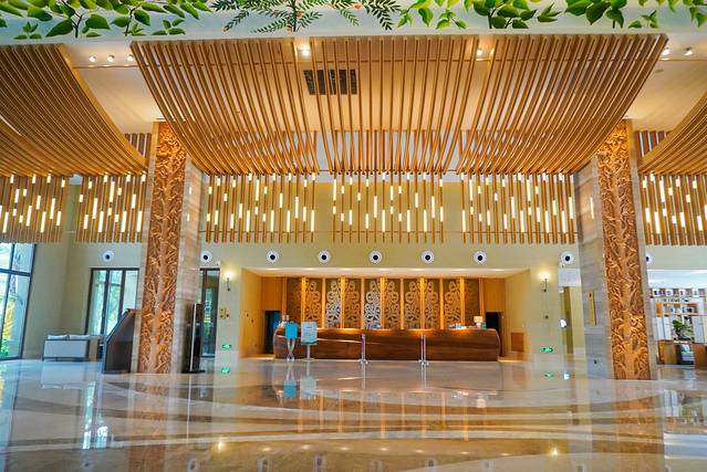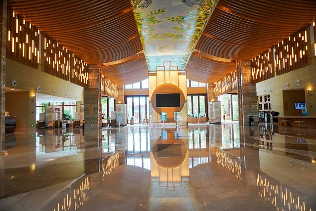 自驾从家里出发,一路畅通,不用两小时便到达酒店。进入酒店大堂,瞬间被大堂大气磅礴的气势吸引。宽阔的酒店大堂结合地域文化特色,把森林景观融入其中,让人彷佛有一种置身森林的感觉。