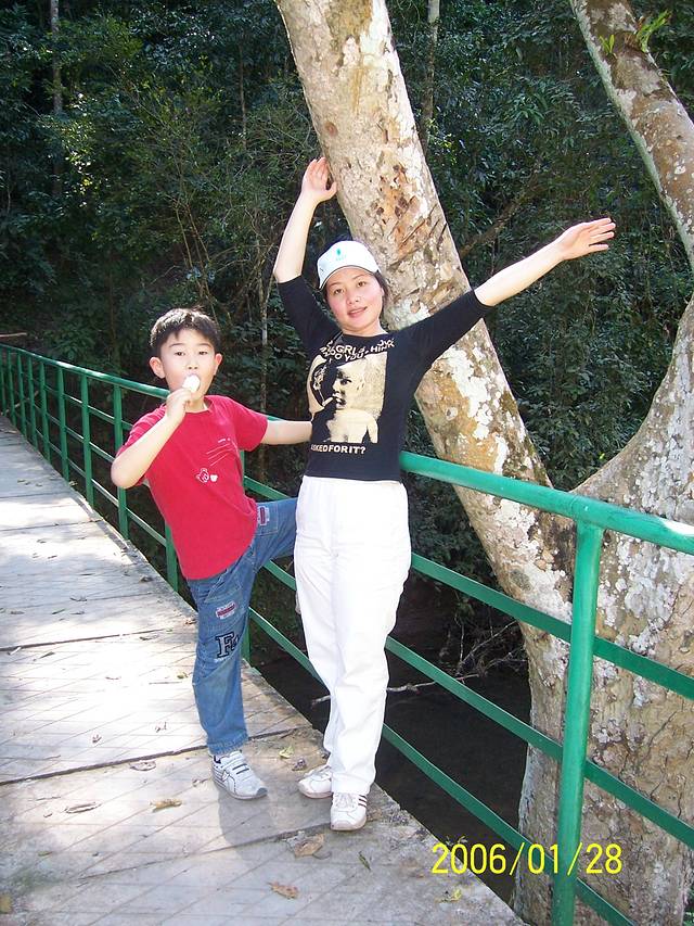 绿到尽头天作岸,客到景洪象为伴。西双版纳一个生机无限、魅力无限的绿色人间天堂,这个天堂,是全球同纬度上唯一的一片热带雨林,唯一的一片绿洲。这片绿洲,又被世人誉为“植物王国”;大象是傣族人民吉祥如意的象征。2006年春节前,我带着儿子到达昆明弟弟家中,便和家人上路了。当晚去桥香园吃了过桥米线。
