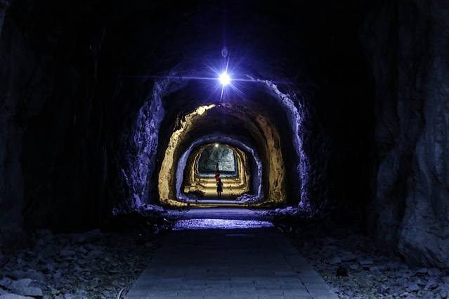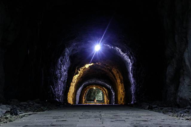 洞天惊魂是一线天登山步道同骆驼峰相连的宽敞隧道,洞天惊魂内还有着各色的幽暗灯光,行走其中十分有意境,当然,当你抵达出口时又是一副奇特的“山水画”。