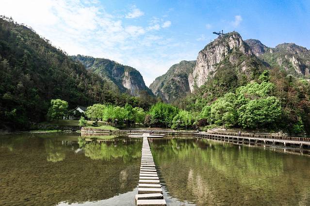 九丈甸园又有着“小 桂林 ”之称,大小 楠溪江 于此汇聚成 楠溪江 的主流,除了 楠溪江 ,这里还有着成片的竹林,阳光透过竹林为九丈甸园留下了零星斑驳,这里可谓是度假好去处。