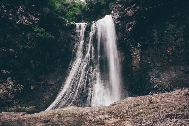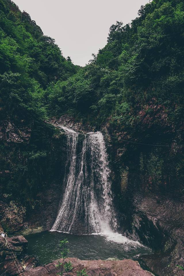 欣赏完了百米碇步与凤凰渡,我们继续向前走去,不知不觉便来到了骆驼峰的山脚,只见眼前的瀑布如同银河般洒落,于 楠溪江 水上的顽石处溅起些许水花,眼前竟也是水雾蒙蒙,这瀑布正是 永嘉 书院中的金珠瀑,其名取自白居易《琵琶行》中的“大珠小珠落玉盘”,无论是近处亦或是远处,皆是蔚为壮观。