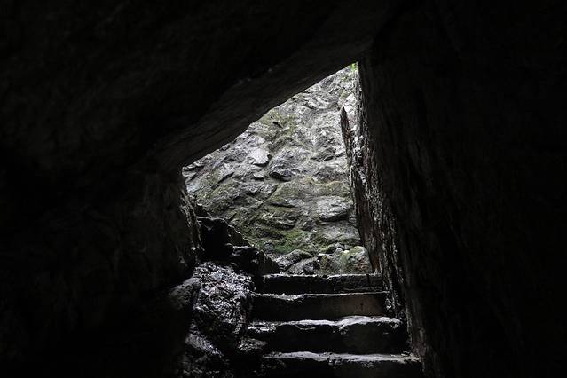 你以为到这里就结束了吗?不,往上是通往爱洛斯云廊的道路,而右手边则是洞天惊魂的另一段,这一段依旧是山洞,奇特的是处于山洞之中却依旧可以欣赏到诸如瀑布之类的美景,往深处走去,更是有着不少的碑铭,诉说着 永嘉 书院悠远的文化。