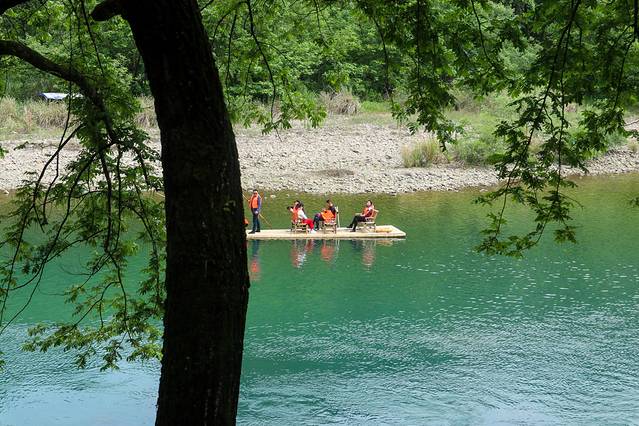 永嘉 书院内 楠溪江 的江水上,随处可见的竹筏供你泛舟,随着竹筏飘荡于碧绿江水之上,这又是怎样一种意境?
