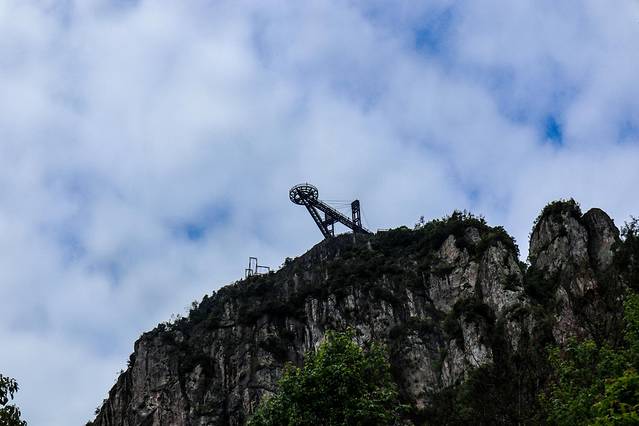 我们最先遇见的是云上玻璃栈道,玻璃栈道虽然不大,却是能很好的从侧面观赏到天空云廊的全景,或许从山下向上看来,天空云廊并未有何特别的地方,但是于玻璃栈道处所见的天空云廊带给人的却只有震撼。