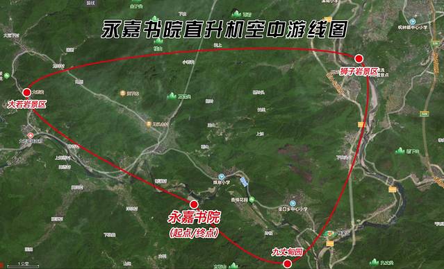 永嘉 书院直升机游线: 永嘉 书院-大若岩景区- 狮子 岩景区-九丈甸园- 永嘉 书院