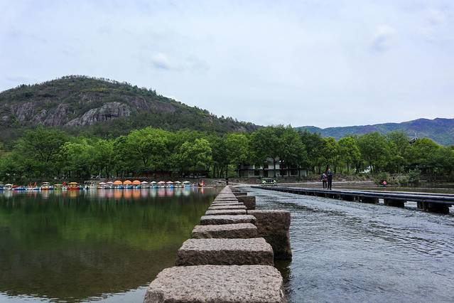 从 永嘉 书院的入口跨过住宿区,我们来到了百米碇步,这是我们见到的第一个十分有特色的自然景致,这里有着175块石碇,全长105米。