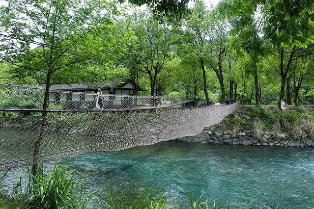 这便同凤凰古城的水上石桩有些相似,不同的是流过百米碇步的,是 楠溪江 碧绿的江水,而踩着石碇行走于 楠溪江 水上方也是一件极为有趣的事,很多游人会选择通过石碇来前往对岸,虽说跨越石碇的难度不大,可依旧需要留意,倘若是边行走边玩着手机,摔入水中也不是不可能。