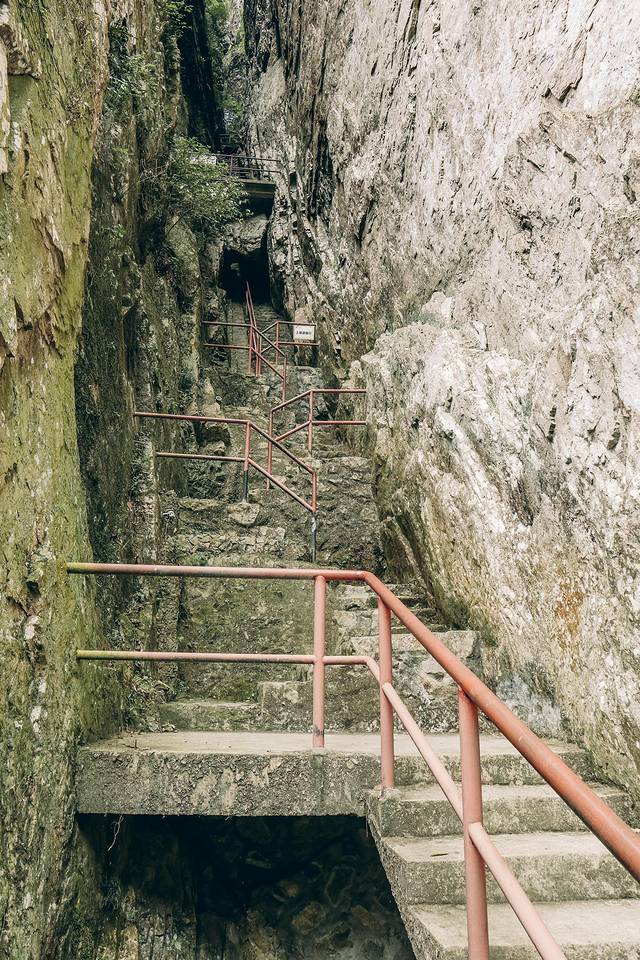 一线天登山步道的路稍微有些陡峭,其陡峭程度介于 泰山 与 华山 的登山步道之间,宅家4月有余的我向高处攀爬的过程中也是微微喘气,你若有毅力登上最高处,那周围的环境便是会改变些许,一瞬间豁然开朗,带给你的是一种征服大自然的快感。