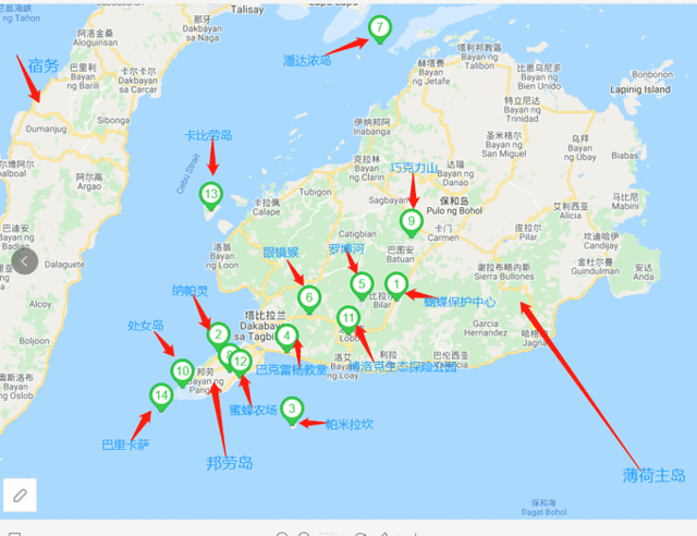 薄荷岛是菲律宾第10大岛,有最干净的海和最原始的森林,著名的巧克力色和眼镜猴就在这里,这里不仅仅有山景,也有海景,是宿务三岛之中玩法最丰富的的一个岛,我们根据地理位置对薄荷岛的主要热门玩法做一下分类,基本上可以分为三类