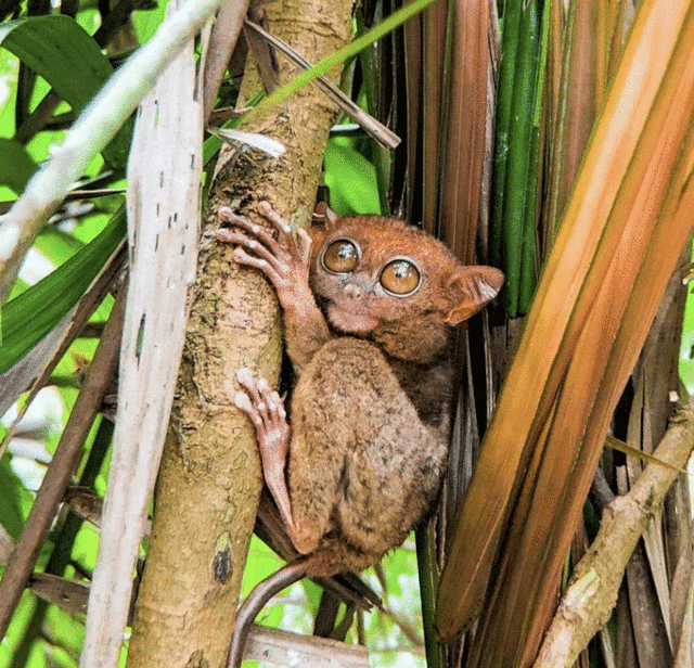 (2)巧克力山附近还有菲律宾的国宝级动物:眼镜猴。眼镜猴是菲律宾的国宝,去薄荷岛不看眼镜猴,就像来中国不看熊猫一样,眼镜猴的体型非常小,有着大而圆的眼睛,像带了副眼镜,所以得名眼镜猴。 它的尾巴很长,总是跳跃行动,习惯夜间活动,样子十分讨人喜爱