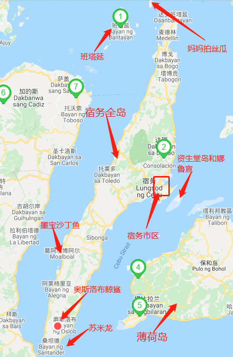 按照路程来说,宿务直接过去最快,其次杜马,最后薄荷