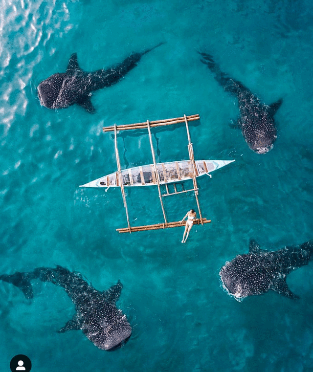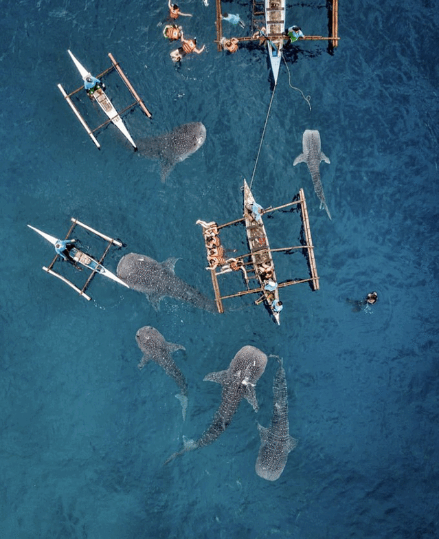 奥斯洛布原本是一个小渔村,前几年开始有野生鲸鲨的出没,当地居民也十分爱惜它们,现在鲸鲨和村民和睦相处。鲸鲨的性格极其温顺,并无攻击性。我们看到的鲸鲨都是属于鲸鲨宝宝,长度在7-8米,相对于我们的身高可以说是庞然大物了。