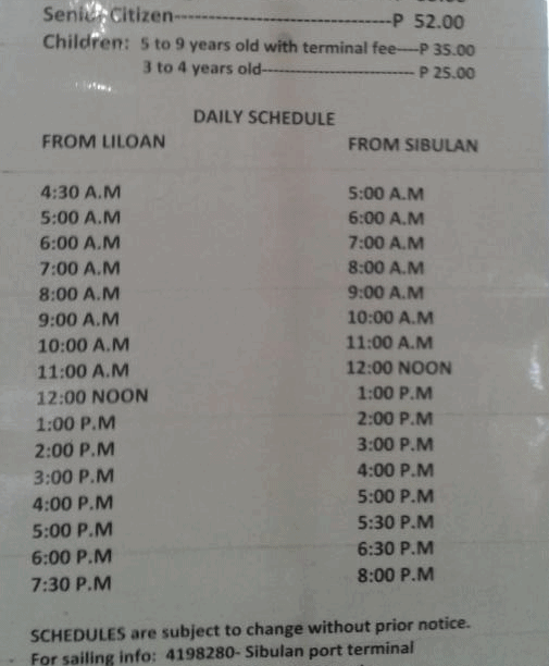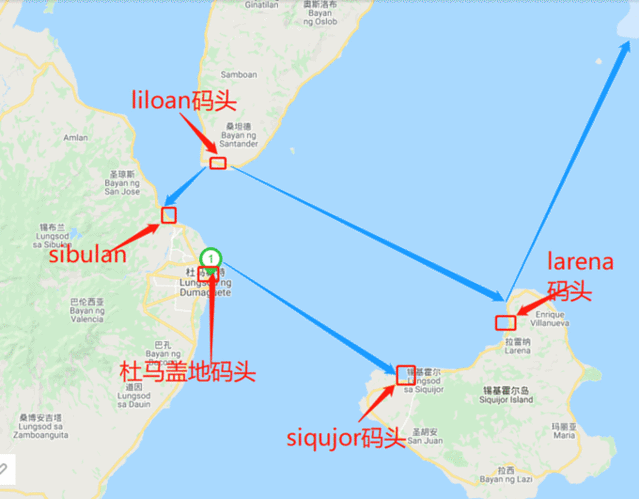 奥斯洛布里安码头(lioan)到杜马盖地sibulan码头船班图