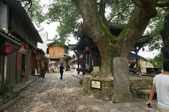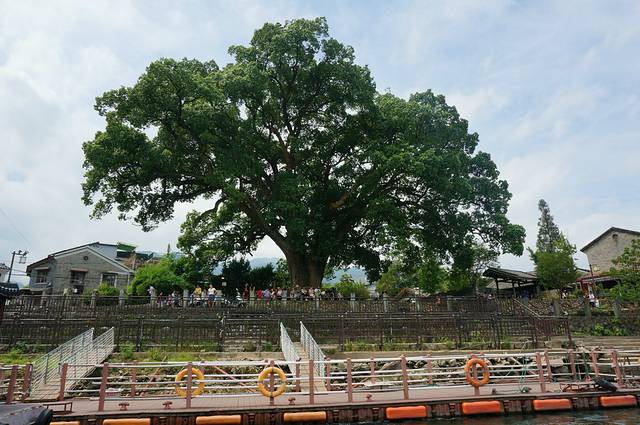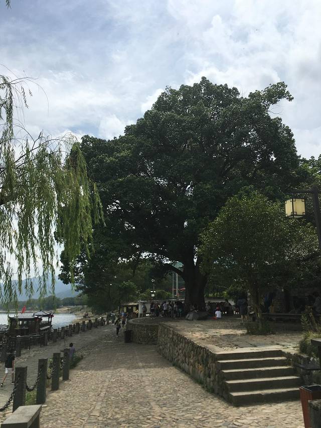 顺着小街一路南行,来到江边渡口,一株高大的古樟十分抢眼,这是当地最为粗大的一株樟树,树冠如云,遮天蔽日,堪称“树王”。树下簇拥着各地游客,在此照相留影已成为必不可少的一景。