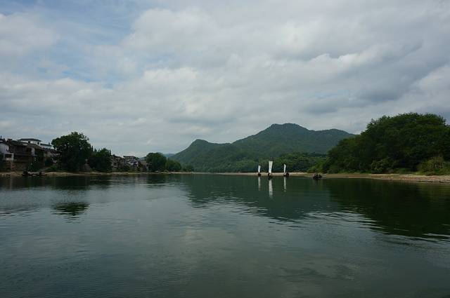 从古堰到画乡仅一水之隔,需乘渡船前往。登上轮渡,两岸青山相对,船行水面碧波荡漾,如入桃源仙境。