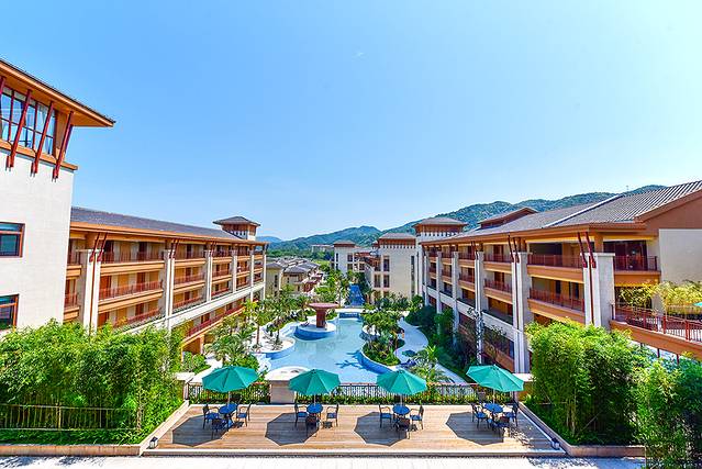 酒店以 东南亚 风格筑造,酒店中央庭院泳池水系环绕,走出客房即可跳入泳池,在这里既能仰望碧空如洗,又能与森林相拥,仿佛被包裹于群山之中,尽情饱尝与自然相伴的轻松惬意。