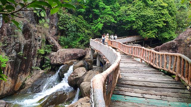 白水 寨景区还是 广东 空气负离子含量最高的景区。从山脚至瀑布源头仙姑天池,可依次到达观瀑台、瀑鸣台、亲瀑台、沐瀑台等多个赏瀑平台,近距离感受瀑布自身旁轰鸣而下的震撼,全身心体验沐浴瀑布水花、负离子清心洗肺的舒畅。