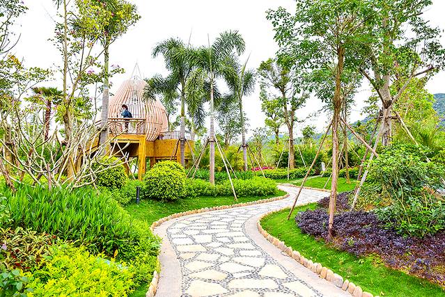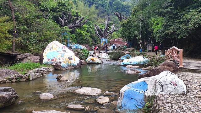 继续往前走可以看到各种奇形怪状的树屋,形态各异、色彩缤纷的彩绘石头,蜿蜒流转的溪水,宛如梦幻清新的童话森林。