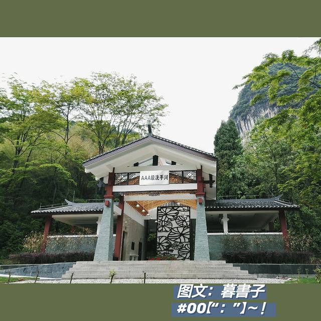 或许是为了跟上景区的步伐,厕所也是有几分艺术气息的。建筑的后面是环抱着绿树的青山,若是打分,我选择好评。