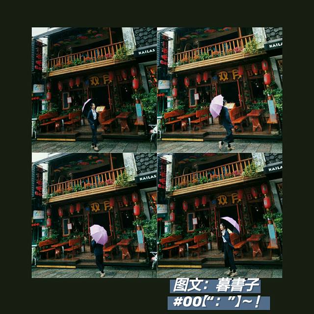 临行前雨中漫步在阳朔西街,是为了留下足迹吧。坐在时光小屋外,拟把酒瓶当玉笛,声声入耳。我曾经以为天朗气清,春暖花开才是最佳摄影季节,直到那暗时天公作美,洒下了一阵又一阵的细雨来,我撑着那把小雨伞,在这条街上旋转几圈也是随性的。有时候打破常规,发现的是另一种美。