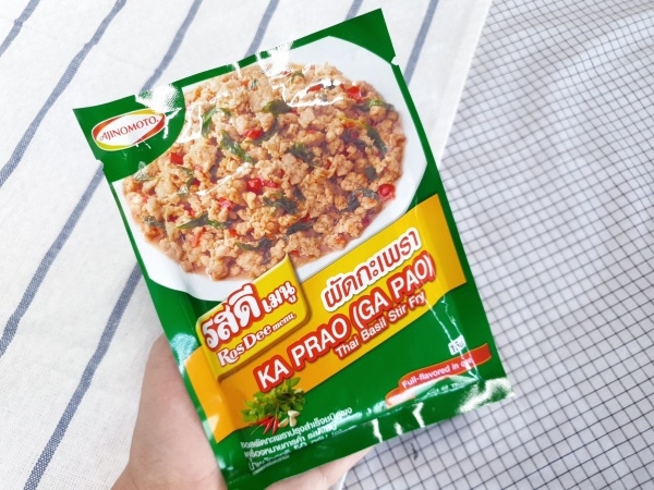 这件是我很想吃的东西。最近在淘宝上有很多商店销售,可是我不买,因为很贵,有机会来泰国了就买回去品尝一下有怎样的口味。我买了就是嘎拋炒豬肉味和绿咖喱味。味道还可以,跟泰国饭店差不多。