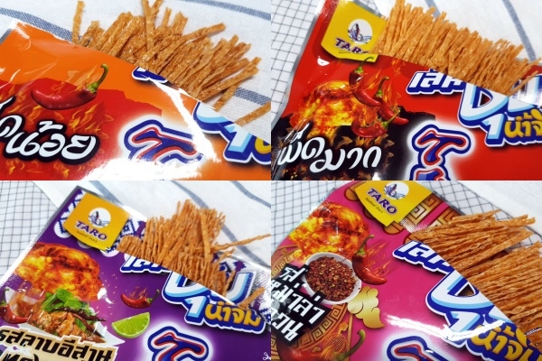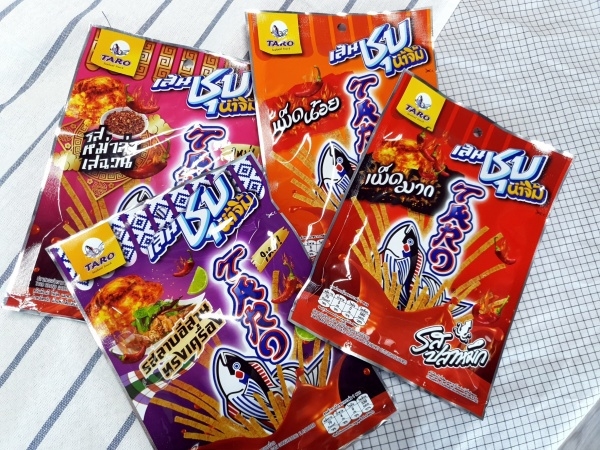 第一个是最近随地国内小卖部能找到的,可是我在中国我只看见了微辣味,。想买全部味道的话,你们要来泰国买了,因为那边超辣味、泰式东北酸辣味、麻辣味都齐全。我吃了停不下口,很喜欢紫色包装,真的泰式口味,酸辣甜咸的,非常合适。价格只是20铢。