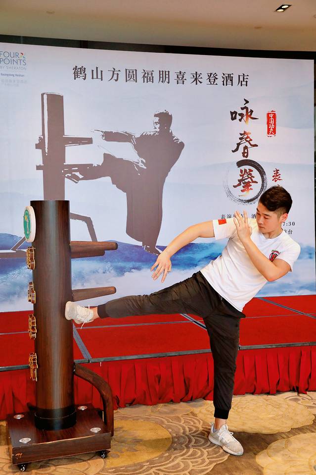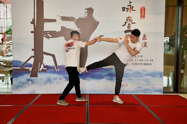 鹤山是咏春拳的发源地,在大堂还有幸看到了咏春拳表演,两娃看得入迷,也跟着一招一式比划起来哈哈哈~