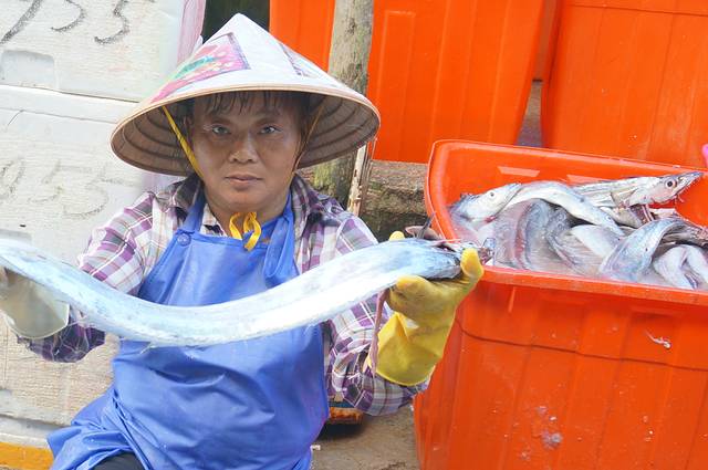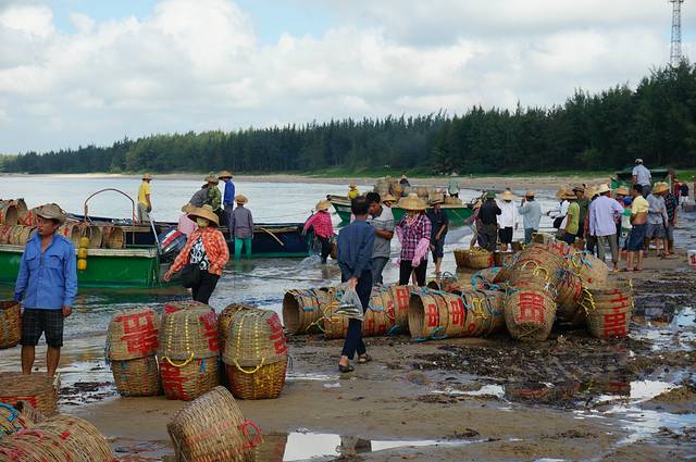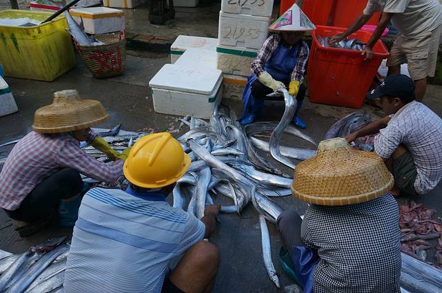 码头附近渔民们正在交易,这个场景我也是第一次见到,好一派生机。