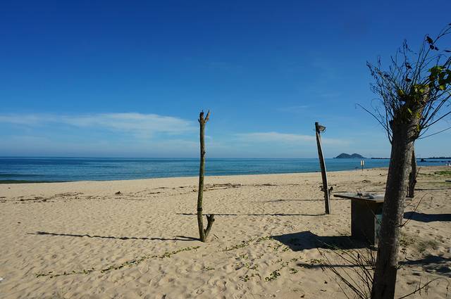 北部滩平浪静,沙质洁白细腻,恍若玉带天成。