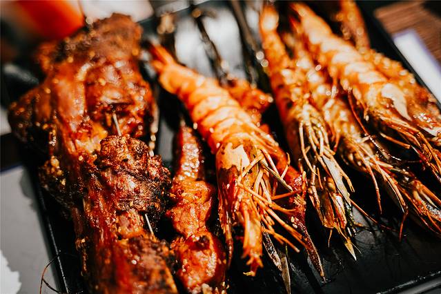烤茄子和烤虾也超级好吃,焖烤的方式特别入味,虾特别大只,虾肉很有弹性,吃的出是很新鲜的虾,各种肉肉也是,香到不行!