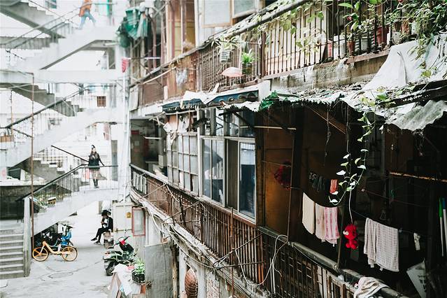 鸳鸯楼其实不是什么景点啦,就是一处居民楼,这里建于上世纪70、80年代,很有风味。穿过院门,先前还是车水马龙的现代都市,瞬间似回到了上个世纪。