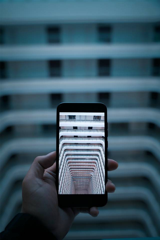 另外一边的几何建筑则有着另外一面的风情,用手机拍起来有种深不见底的感觉,让人不由得生出一种对未知的恐惧感和敬畏感。