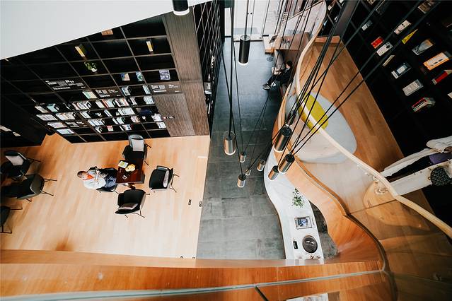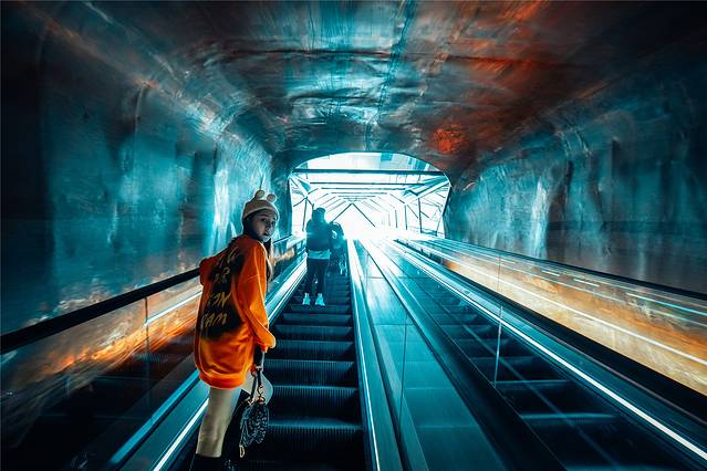 这个电梯真的好有感觉,乘着这个电梯,去书店读几本书,再合适不过了。有种科幻小说的感觉,穿越时空去见你~