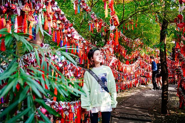 好喜欢这里红丝带和绿植相互照应的景象,虽然说是红绿配,但是一点都不俗气,反而自带一股成都独有的风味。